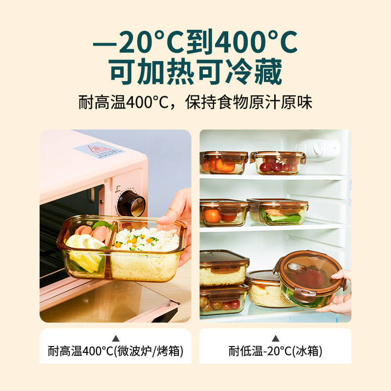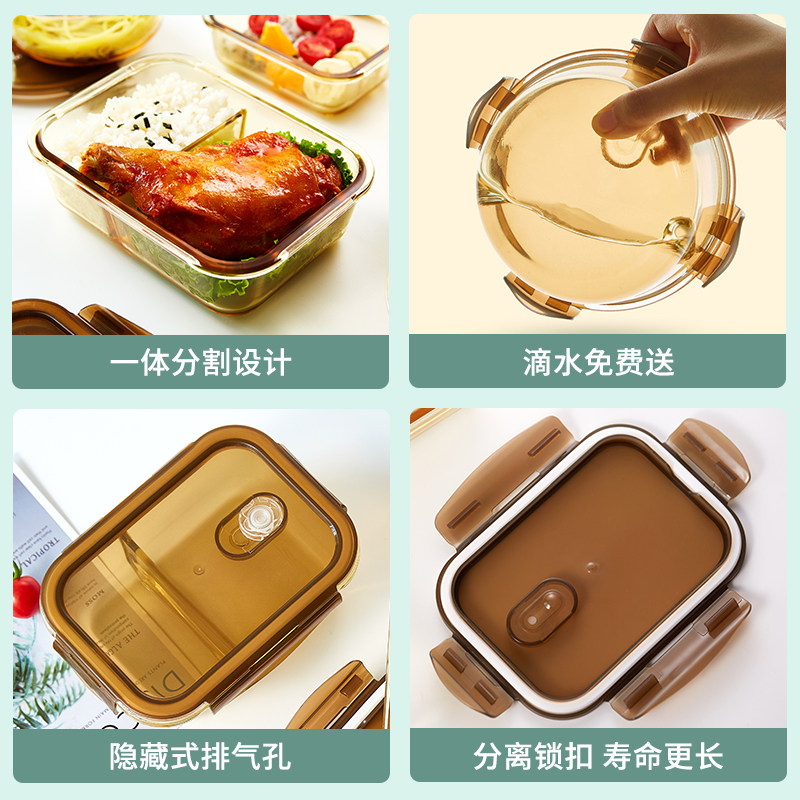 Work family glass lunch box microwave oven heating special insulated dining box with dinner boxed lid sealed refreshing box