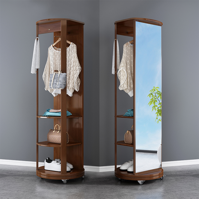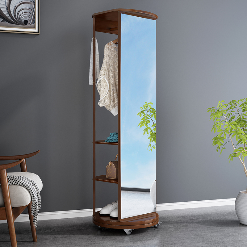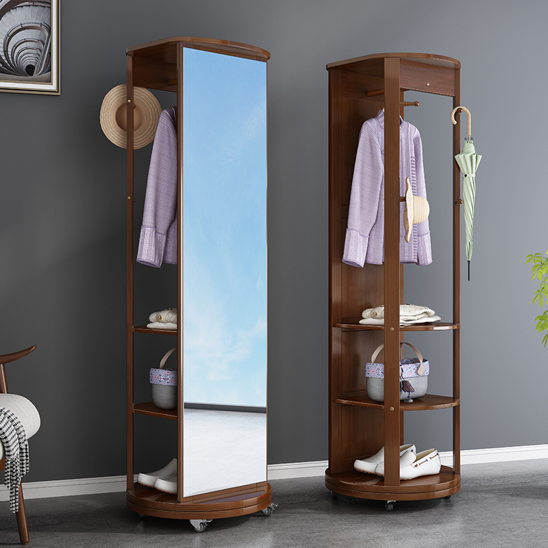 Hanger floor bedroom coat rack solid wood household shelf movable rotating full-body mirror hanger one