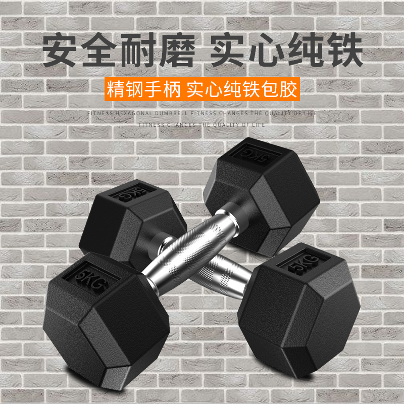 Iron-clad dumbbells men's fitness home equipment training arm muscles ladies students hexagonal cast iron sub-bells 5KG 20 kg