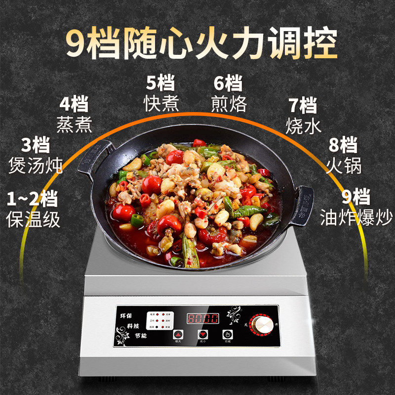 3500w Shang Home Dual-purpose Concave Fire Stir-fry (9 Gear Fire Machine Waterproof) 5000w Commercial Dual-use Concave Fire Stir-fry (9-gear firepower complete machine waterproof) empty open