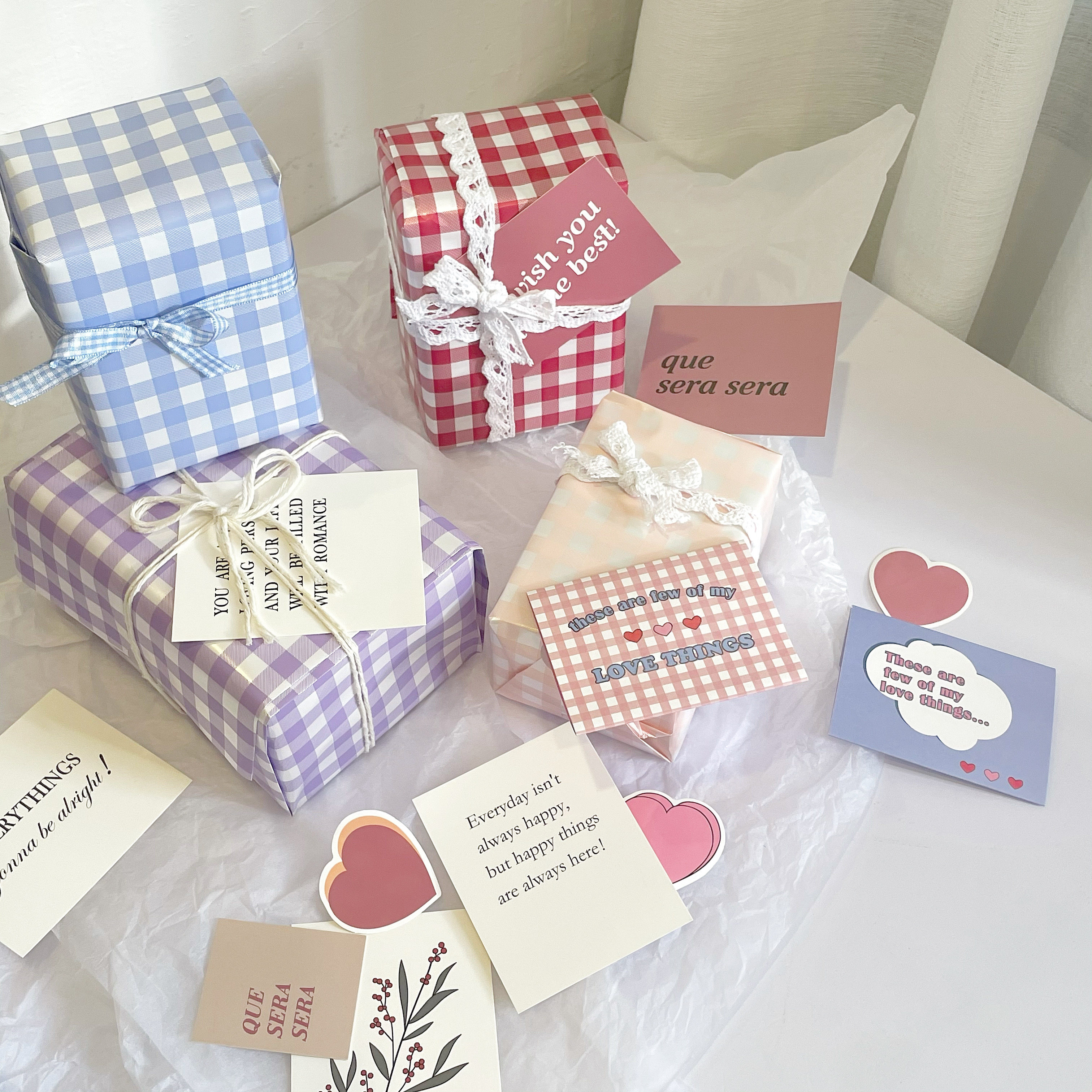 10 pieces of red and white grid wrapping paper 10 pieces of blue and white grid wrapping paper 10 pieces of green and white grid wrapping paper 10 pieces of purple and white grid wrapping paper 10 pieces of pink and white grid wrapping paper 10 pieces of five kinds of grid wrapping paper 2 each, a total of 10 five