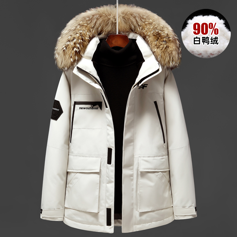 Down jacket men's medium and long version thickened 2021 winter new couple tooling big hair collar tide goose big size coat