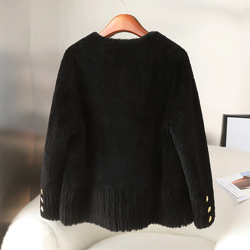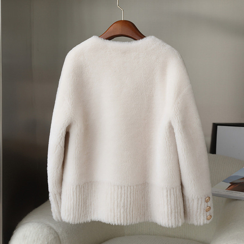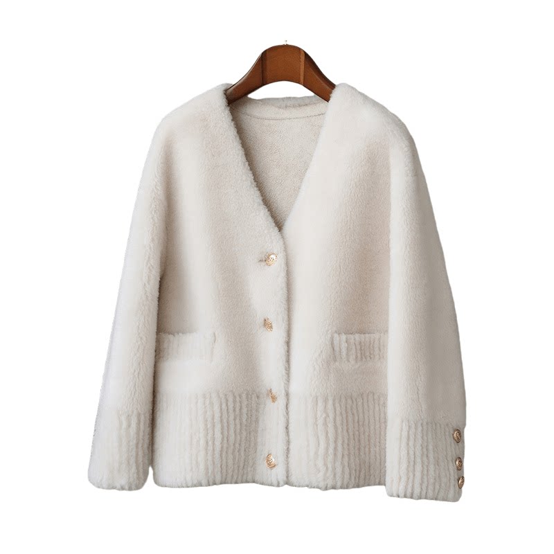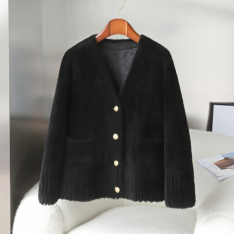 Anti-season clearance young lamb fur women's coat short V-neck grain sheep shearling fur coat