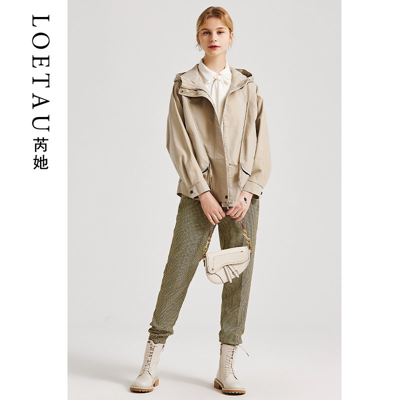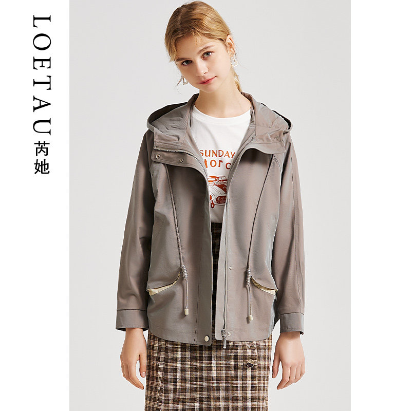 Reher wind coat jacket female short section 2022 spring autumn season new small subliser cap casual loose tooling short coat