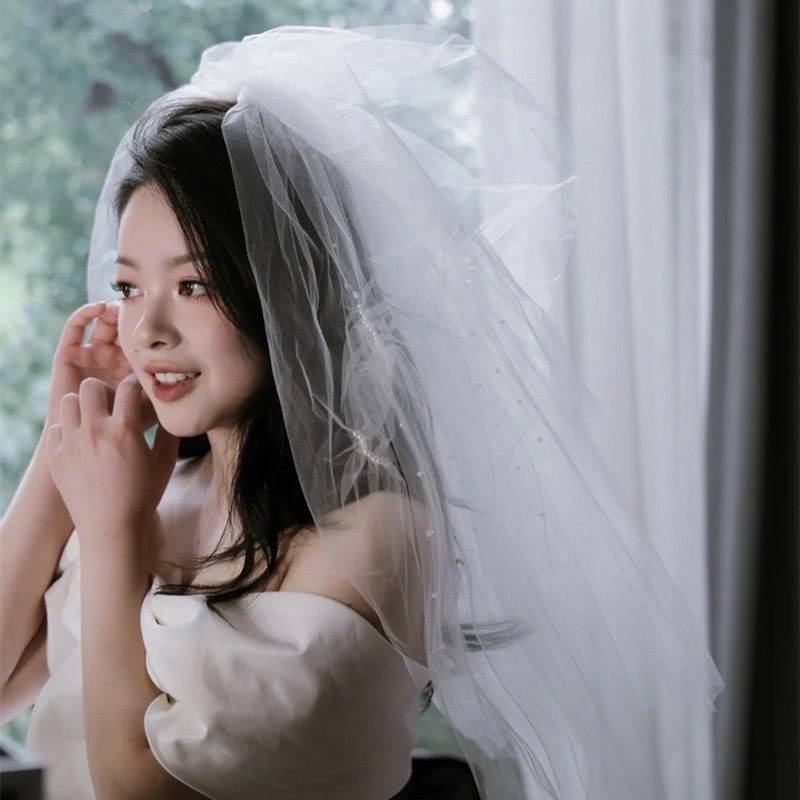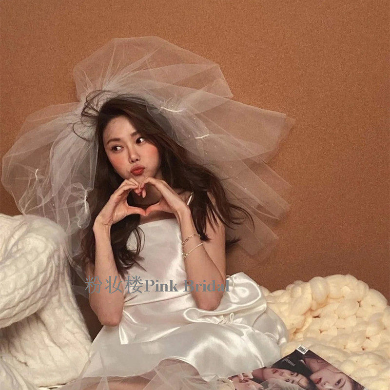 New handmade beaded bride wedding veil wedding photography photography with makeup head jewelry fluffy organza super fairy