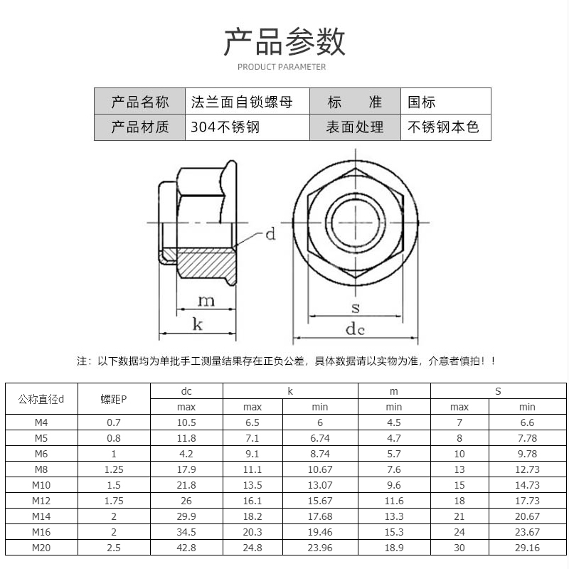 304 stainless steel flange nylon metal locking nut non-slip self-locking screw cap anti-loose anti-cap M3-M12
