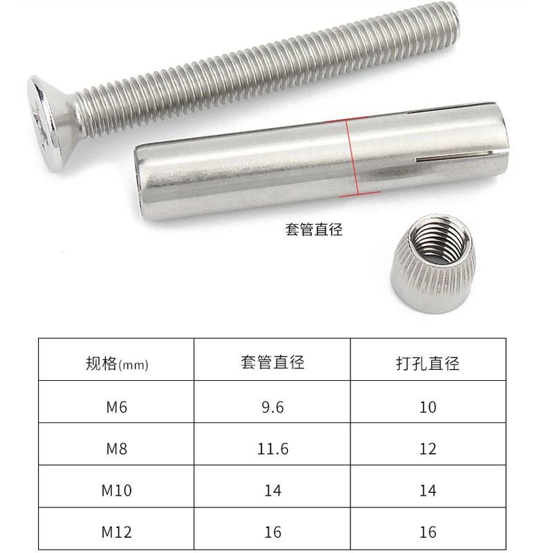 201304 stainless steel cross countersunk head inner expansion screw bolt in sunken head implosive M6 8 10 12