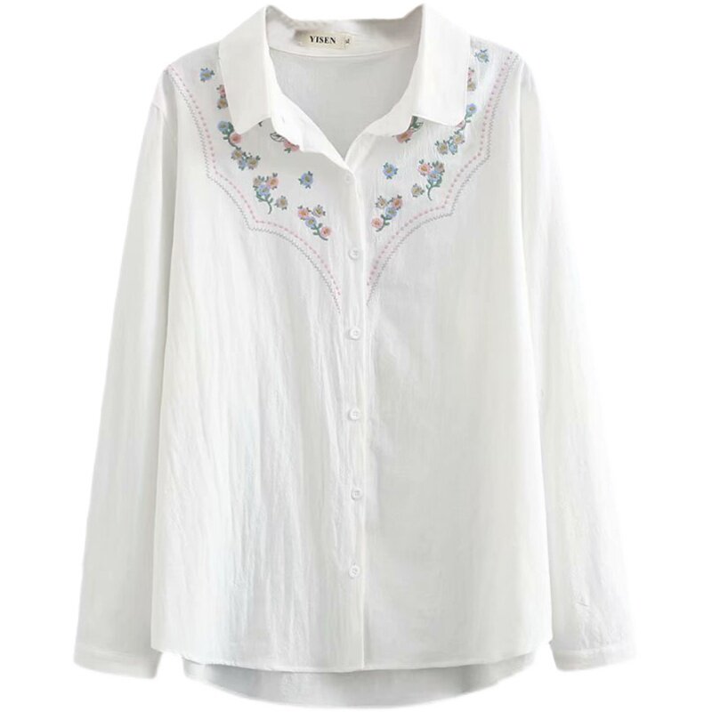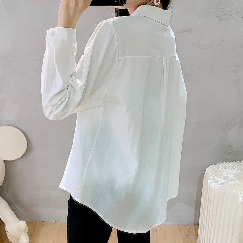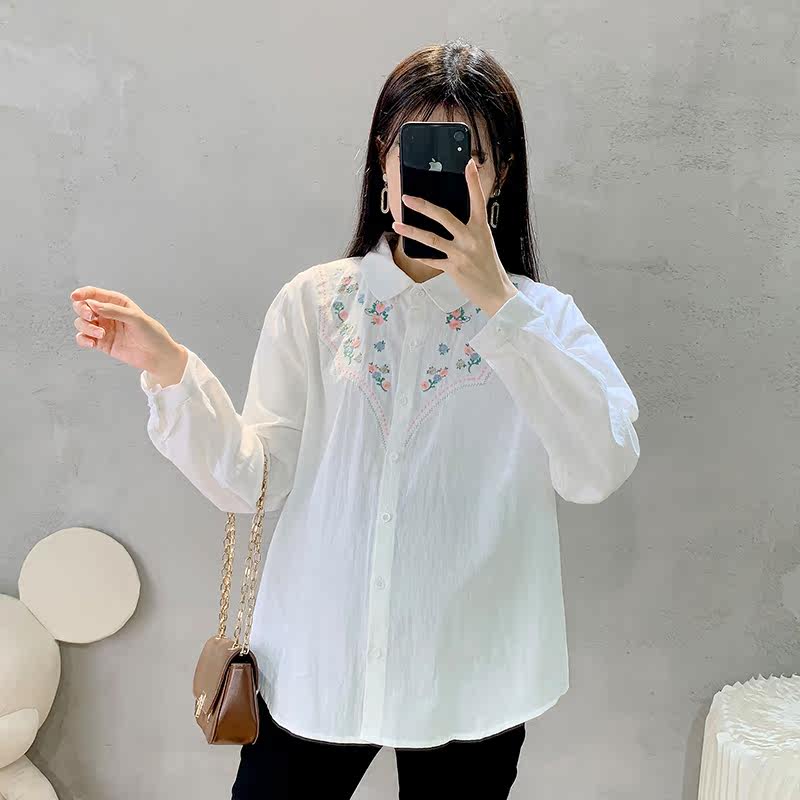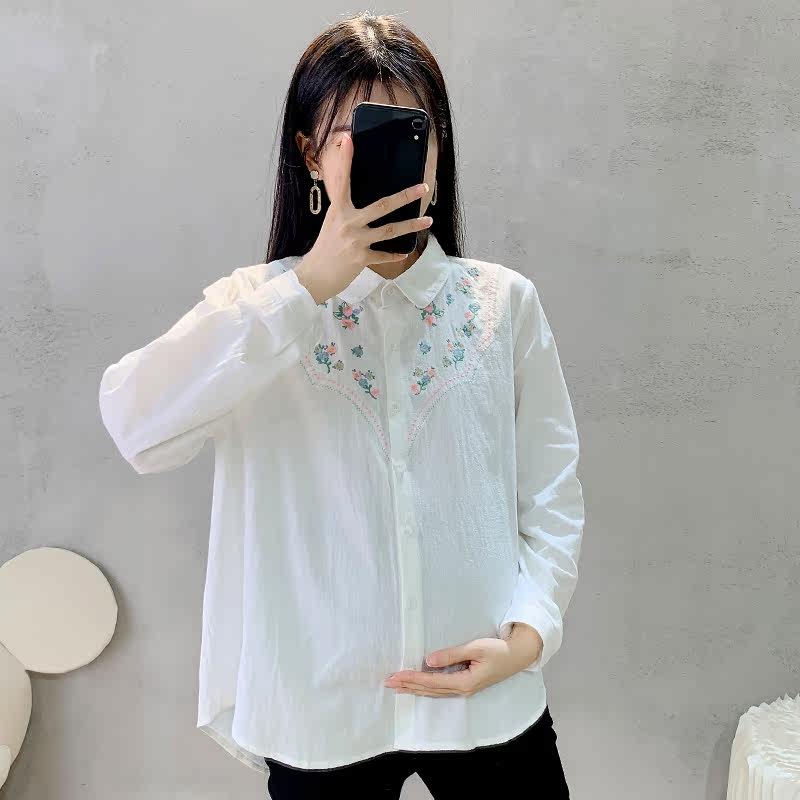 Maternity shirt autumn 2022 new embroidery lapel top Korean version large size loose mid-length bottoming shirt