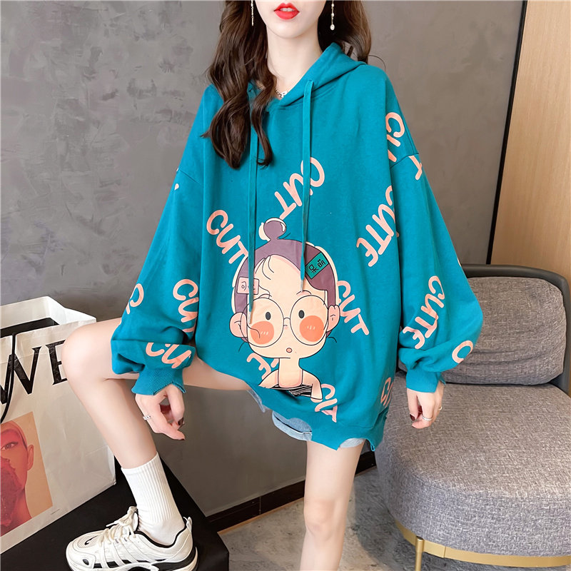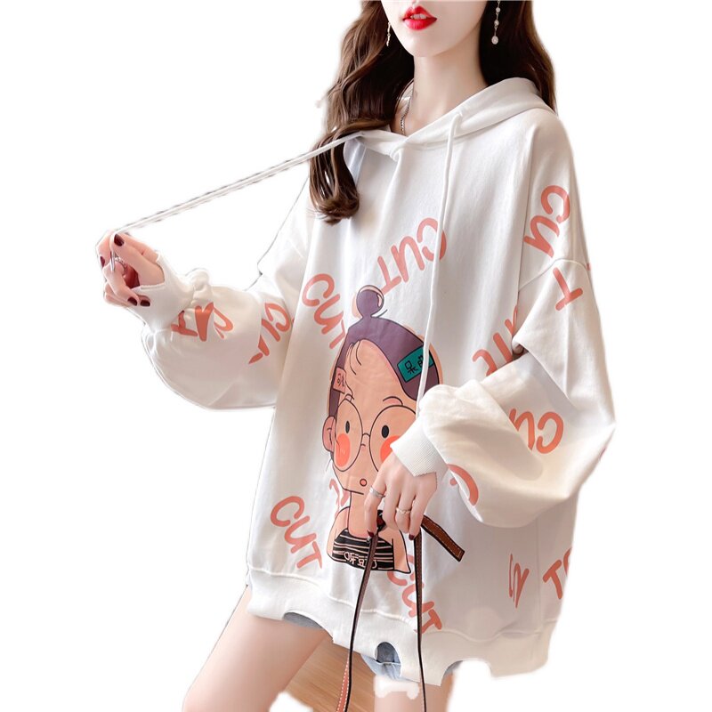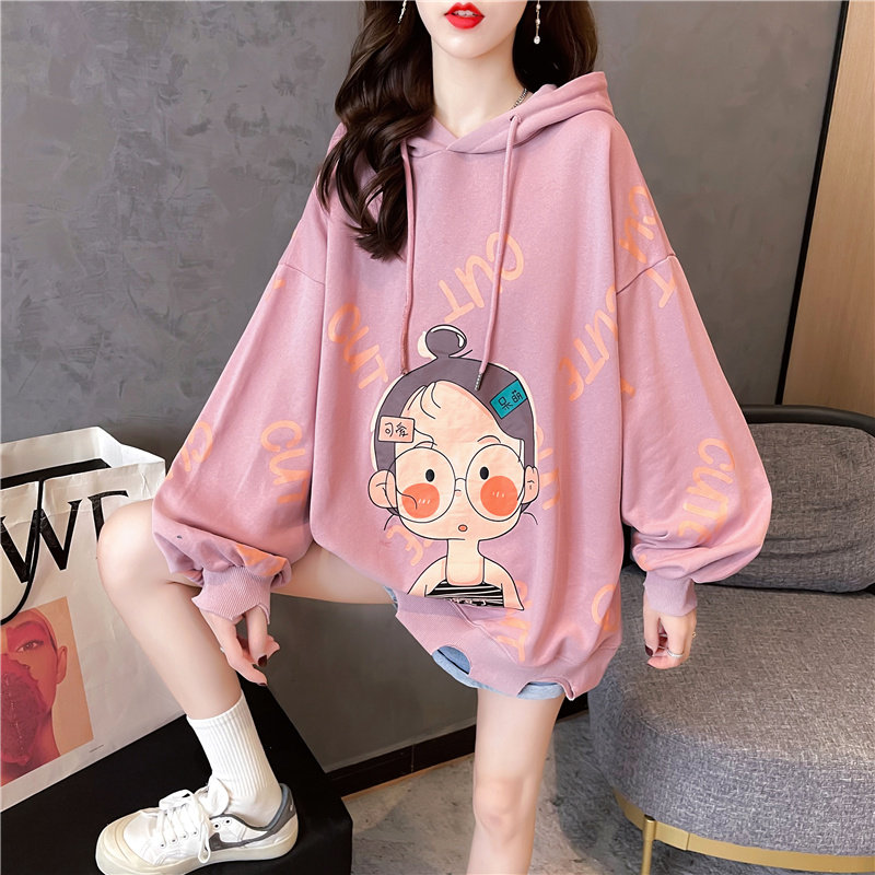 2021 Maternity Wear Autumn New Korean Style Fashion Loose Hooded Printed Top Large Size Women's Sweater