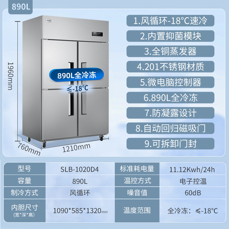Haier four - door refrigerator commercial wind cycle 1020 liters of full frozen restaurant freezer vertical stainless steel snow cabinet