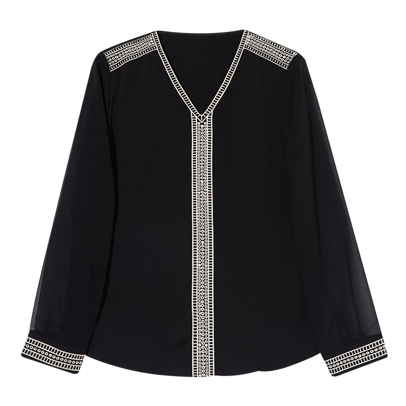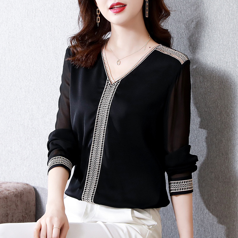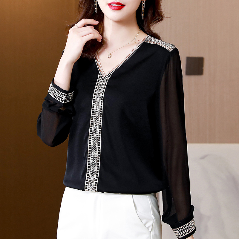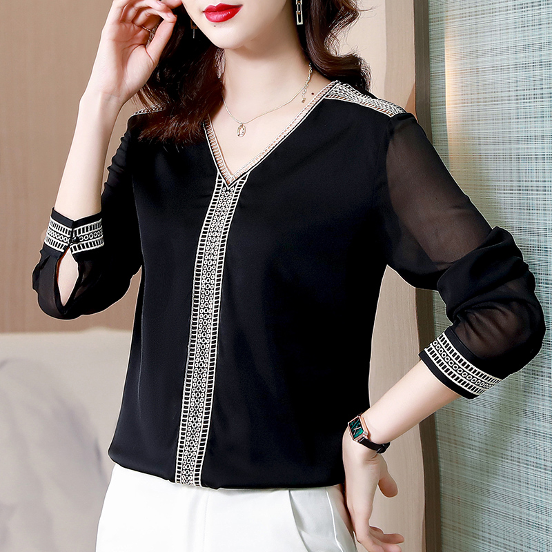 2022 New long - sleeved black V - collar snow - spinning shirt lady autumn clothes mother Yang upscale shirt