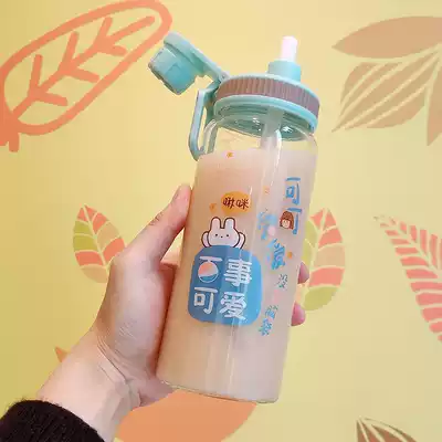 Water cup women with straw glass simple fresh creative portable ins cute personality trend Shaomen Cup