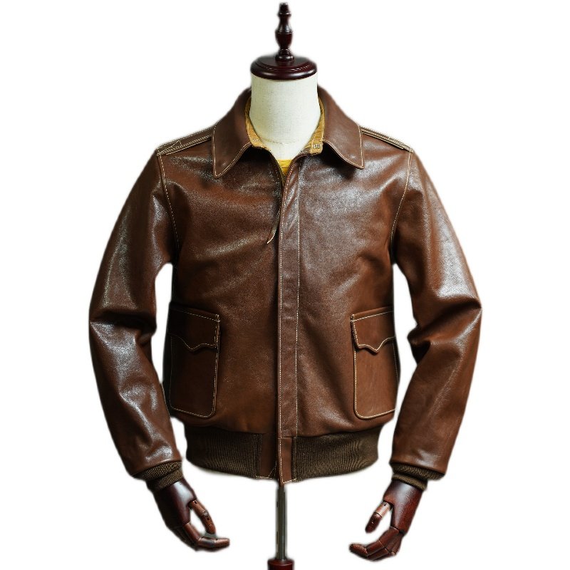 Universal production reengraved World War II beauty A2 flying jacket tea brown tanned leather jacket jacket hard