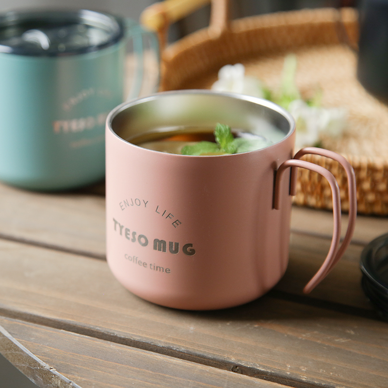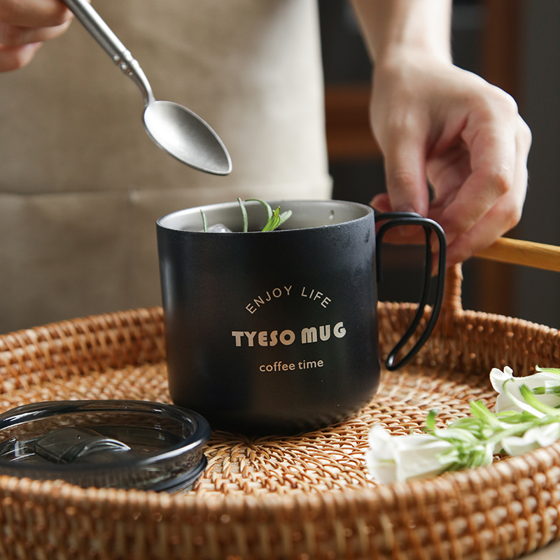 SD Nordic ins dining room household double-layer stainless steel coffee breakfast beer mark water cup with lid and handle