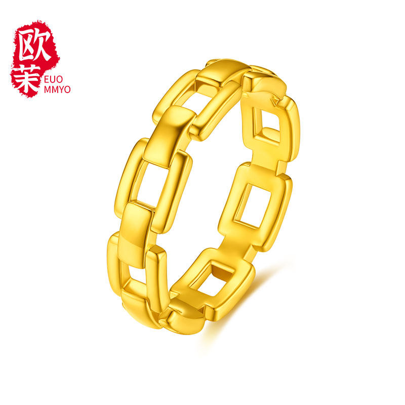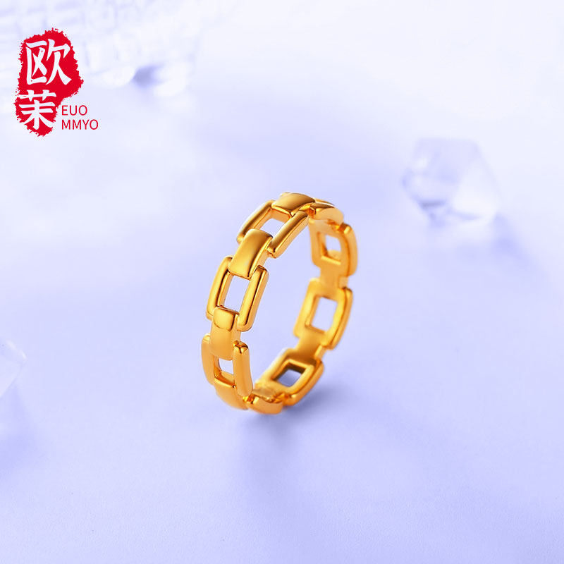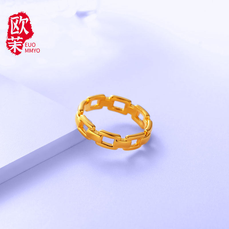 Gold chain ring 5D hardgold simple cyanide-free in wind geometric lockchain couple ring ring