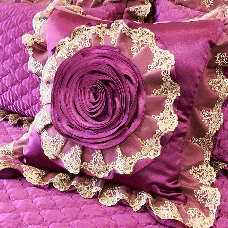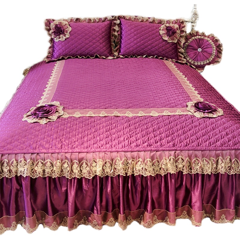 European style bed skirt bedspread solid color non-slip embroidery villa bed skirt three-piece set of home tatami mat cushion pillow cushion