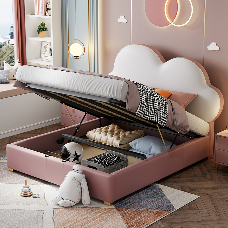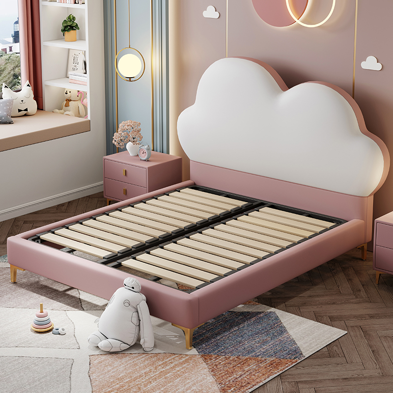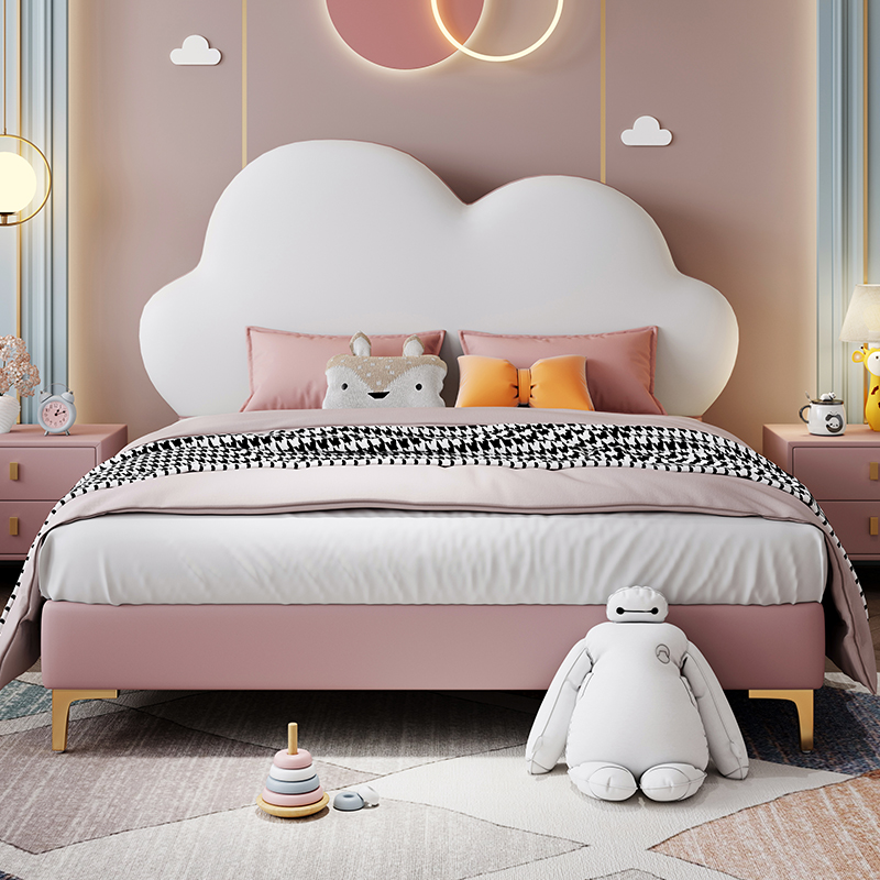 Children's bed Nordic leather girl princess bed 1 5m 1 35m girl bed net red simple modern cloud bed