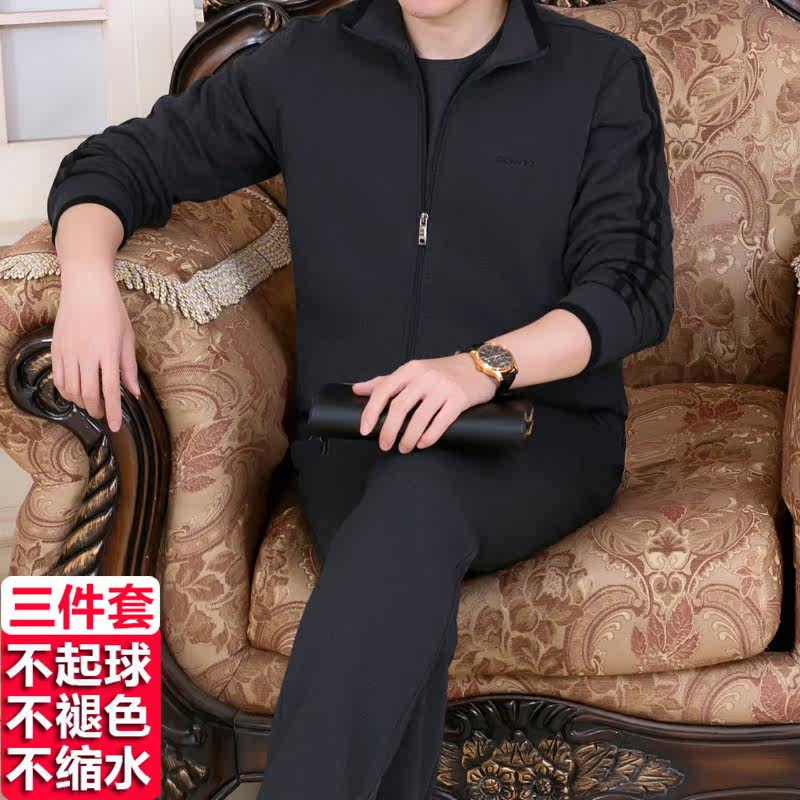 Middle-aged and elderly spring and autumn sports suit men's three-piece loose dad's casual sportswear running suit pure cotton