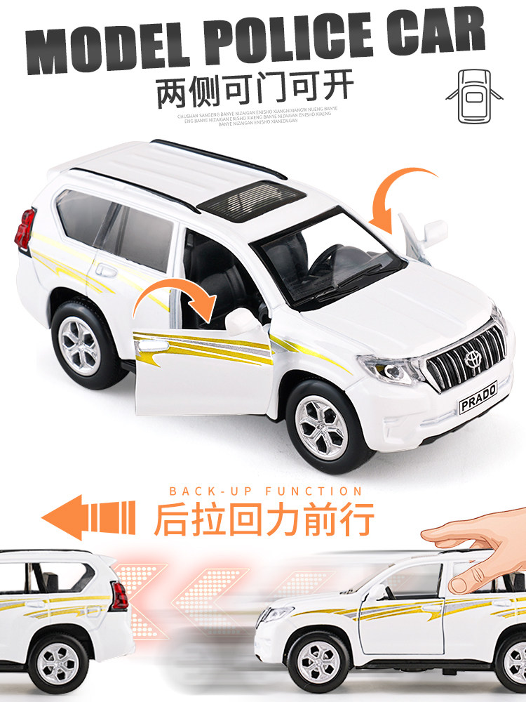 Toyota bully-white (double door with sound and light) Toyota bully-black (double door with sound and light) Toyota bully-police car (double door with sound and light) To