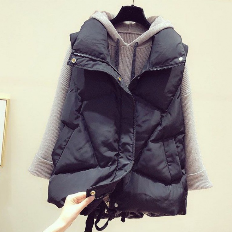 Autumn-winter down cotton waistcoat Female mid-length New Korean version loose collar waistcoat 100 lap waistcoat Female-Taobao