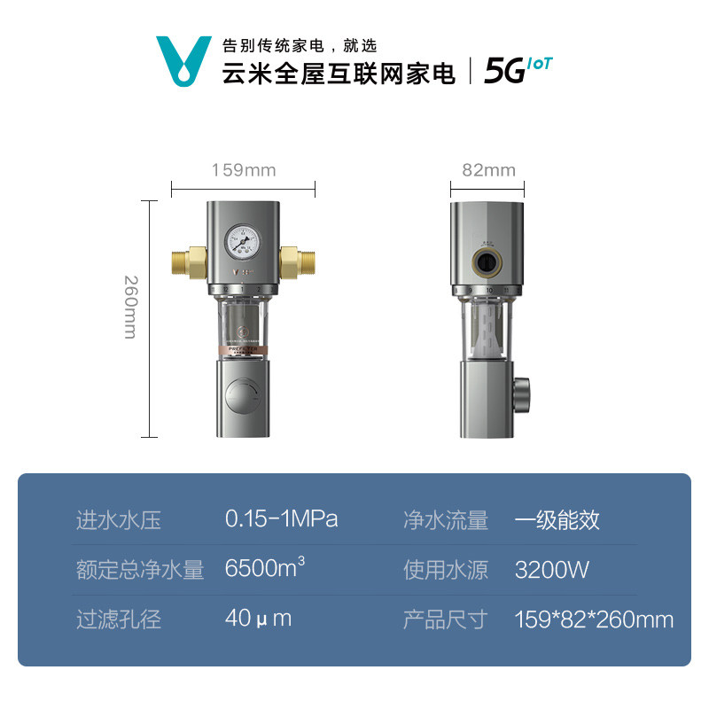 Upgraded Yunmi whole house pre-filter home central water purifier backwash 5T H large flux