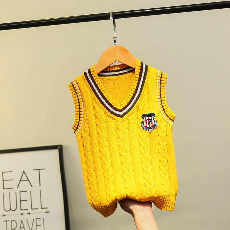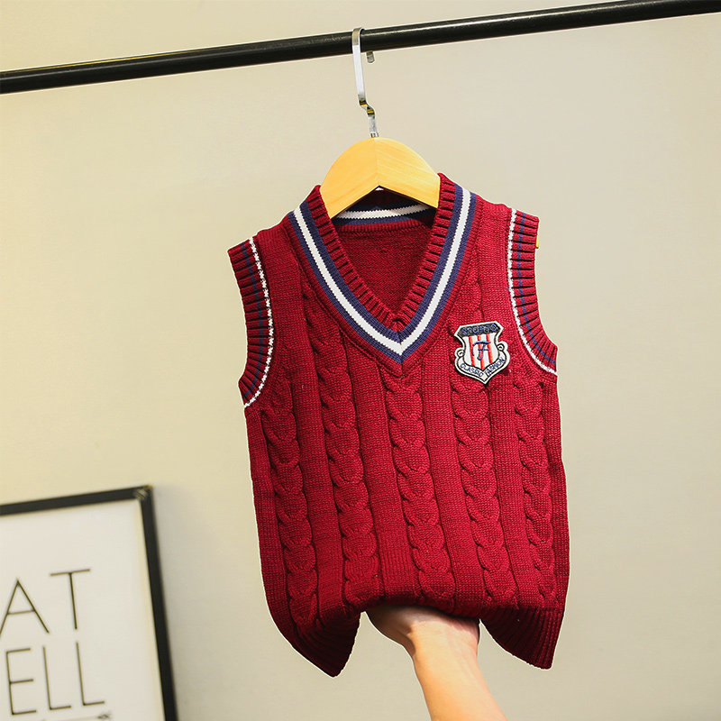 Baby vest children's knitted vest cotton spring and autumn boys plus fleece sweater girls college style vest