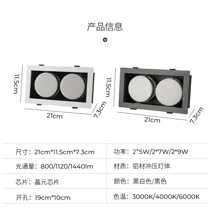 Led cylinder lamp Three-colour variable light grille astigmatism hole barrel lamp Indoor 10W modern bedroom with replaceable double-hole bucket liner lamp