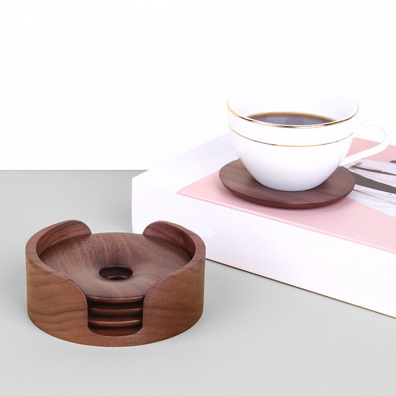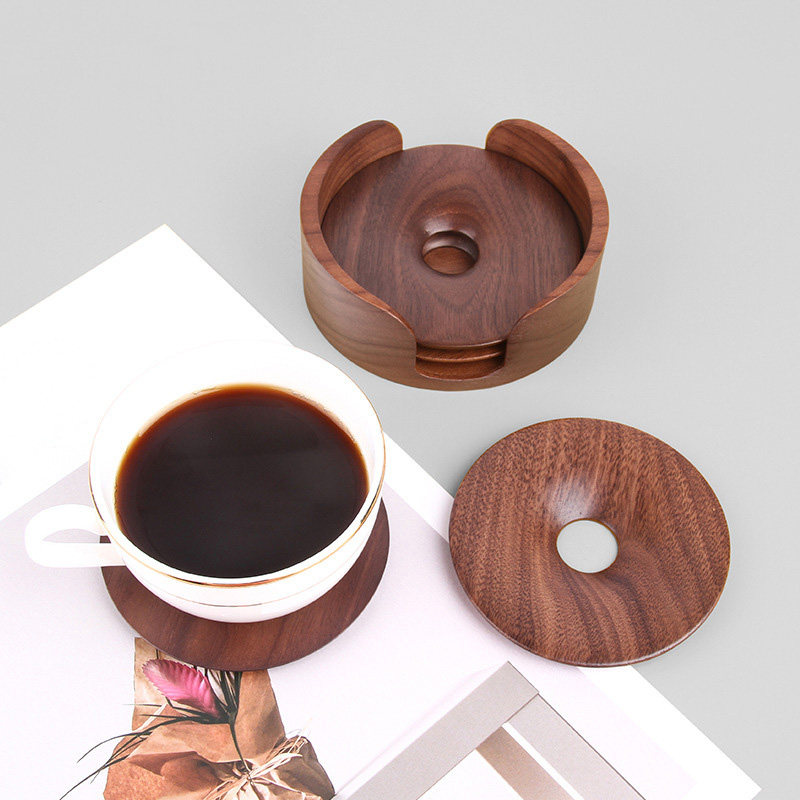 BanSerge Day Style Black Walnuts Wood Cup Mat Home Glass Tea Cup Beer Cups Coffee Cup Mark Cup Insulation Mat