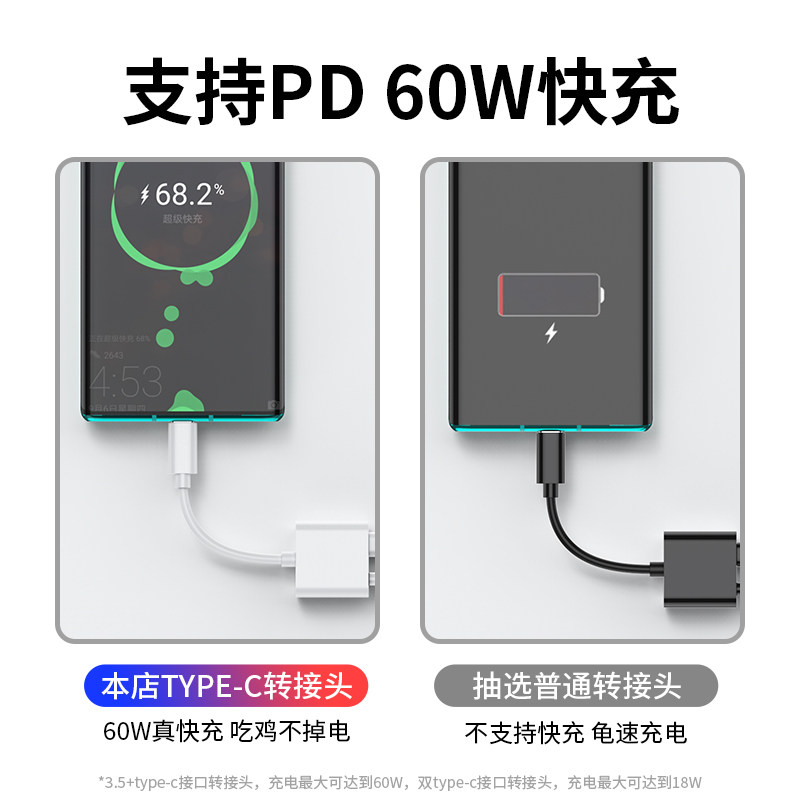 Apply Huawei Huawei p50 Pro Headphone Adapter Double Typec Quick Charge Two-in-one Converter Tpyec Connector Turn 3 5 Line p40p30 Phone Turn