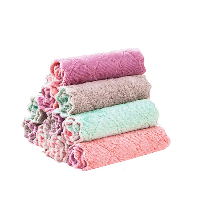 Household cleaning rag dishwashing pot scouring cloth coral velvet absorbent decontamination rag wiping table wiping cloth
