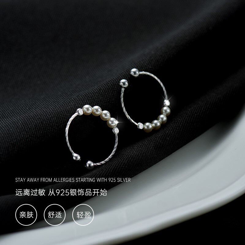 925 Silver Ring girl designs pearl cold wind high retro in tide finger opening adjustment tail ring