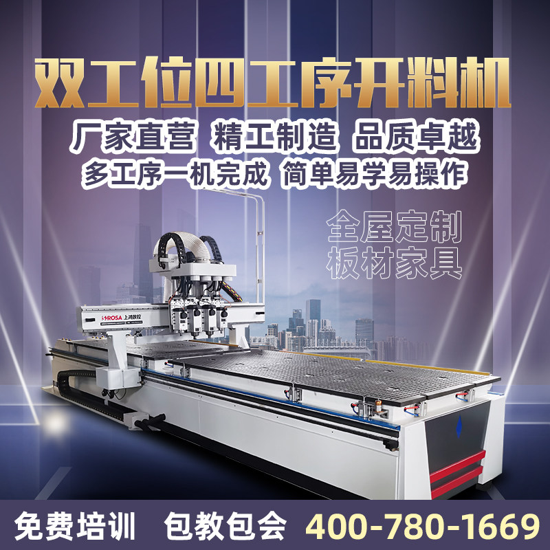 Double-station straight-row processing center woodworking Lamino-type full furniture cutting machine four-process CNC automatic