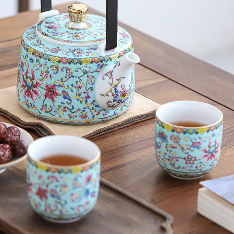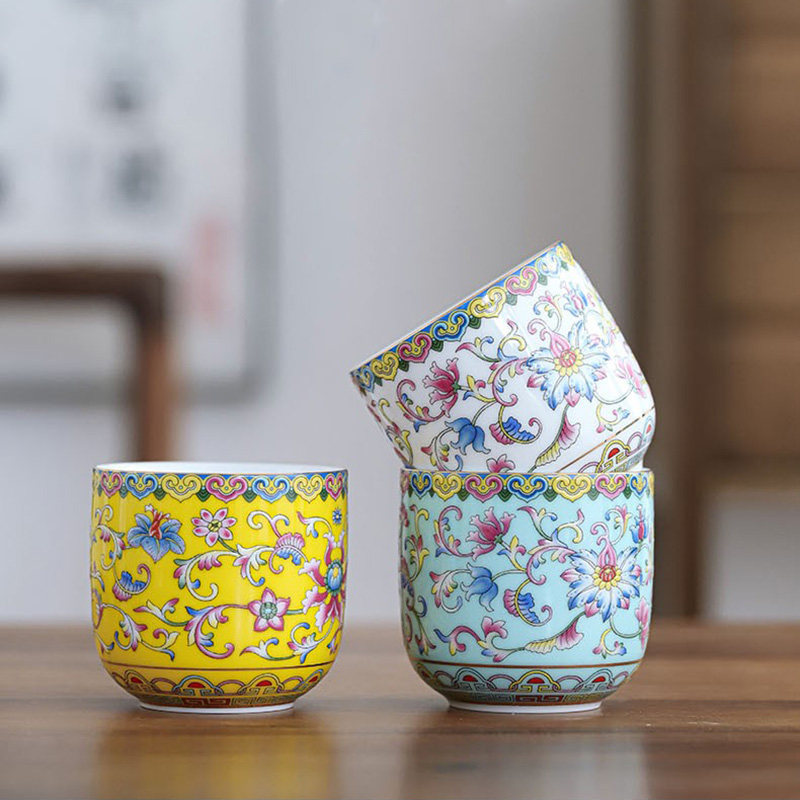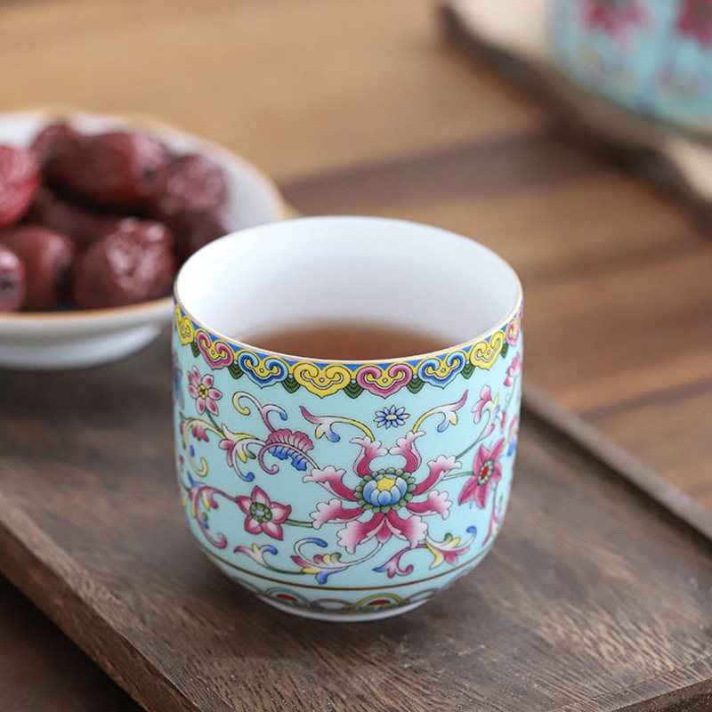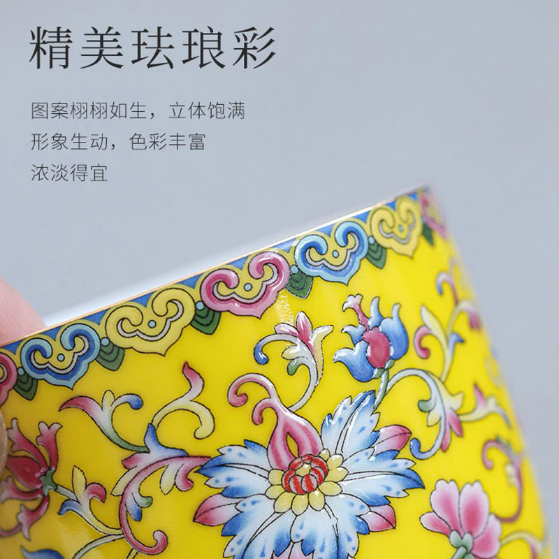 Jingdezhen ceramic tea cup single cup kung fu tea set Chinese classical enamel color tea cup water cup high-end tracing gold
