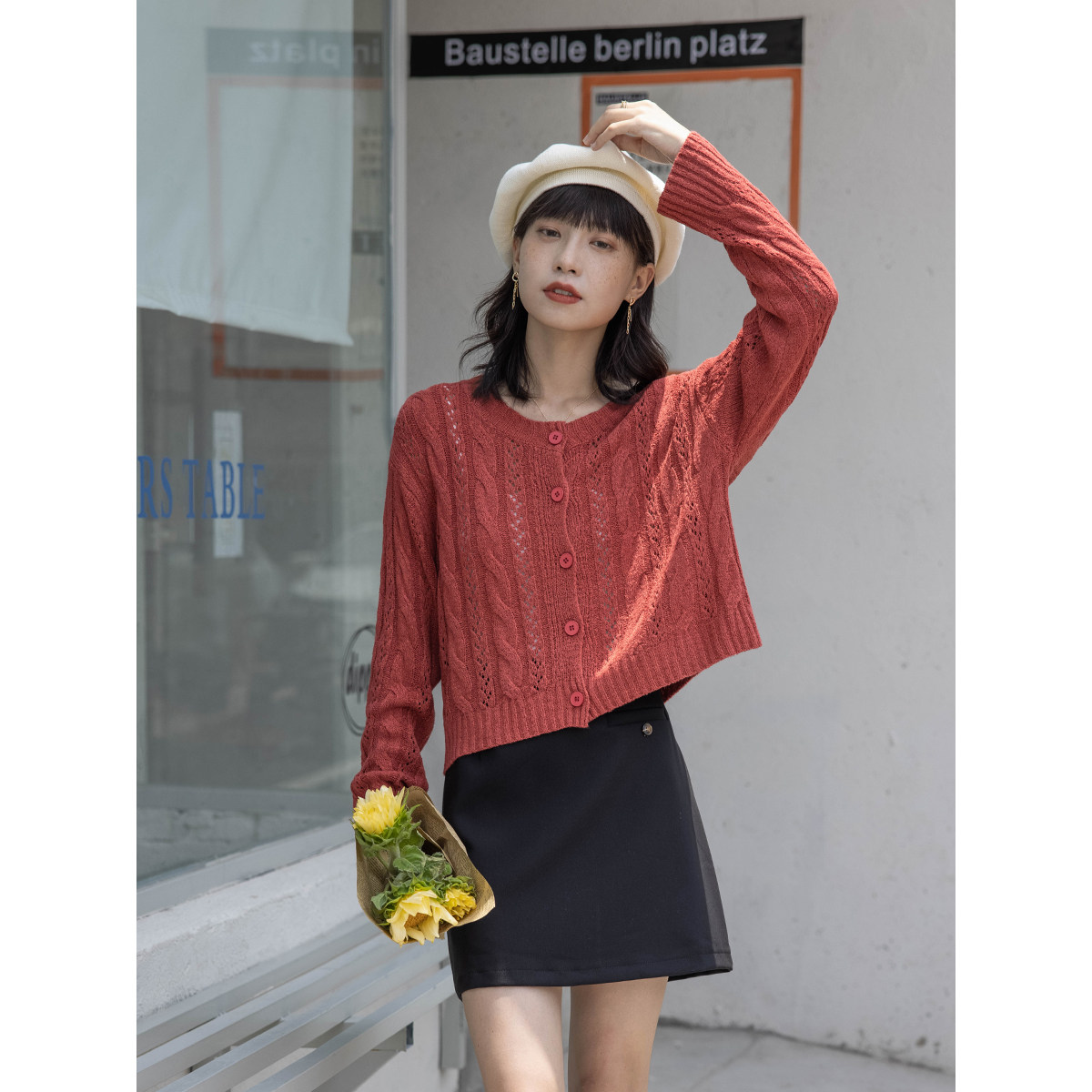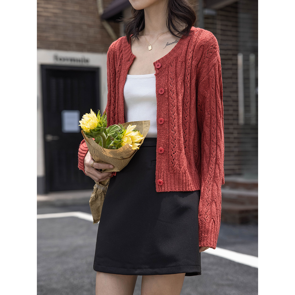 Design fake pocket black half - body skirt early spring new retro high - waist slim skirt skirt