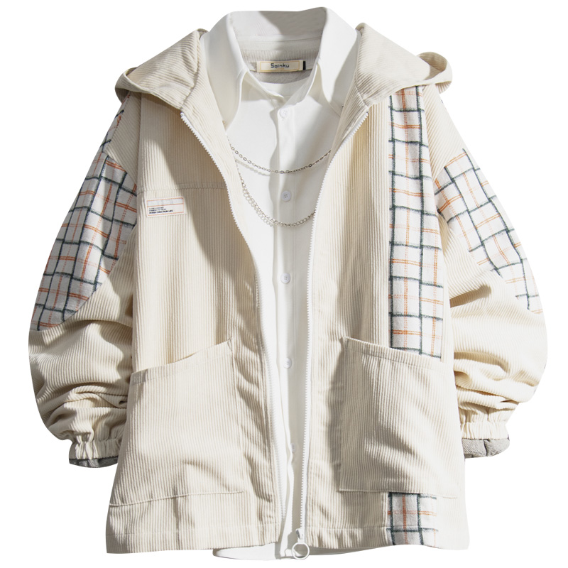 @Flammable Youth Tide brand corduroy jacket men's stitching spring and autumn loose outer wear 2021 new ins jacket