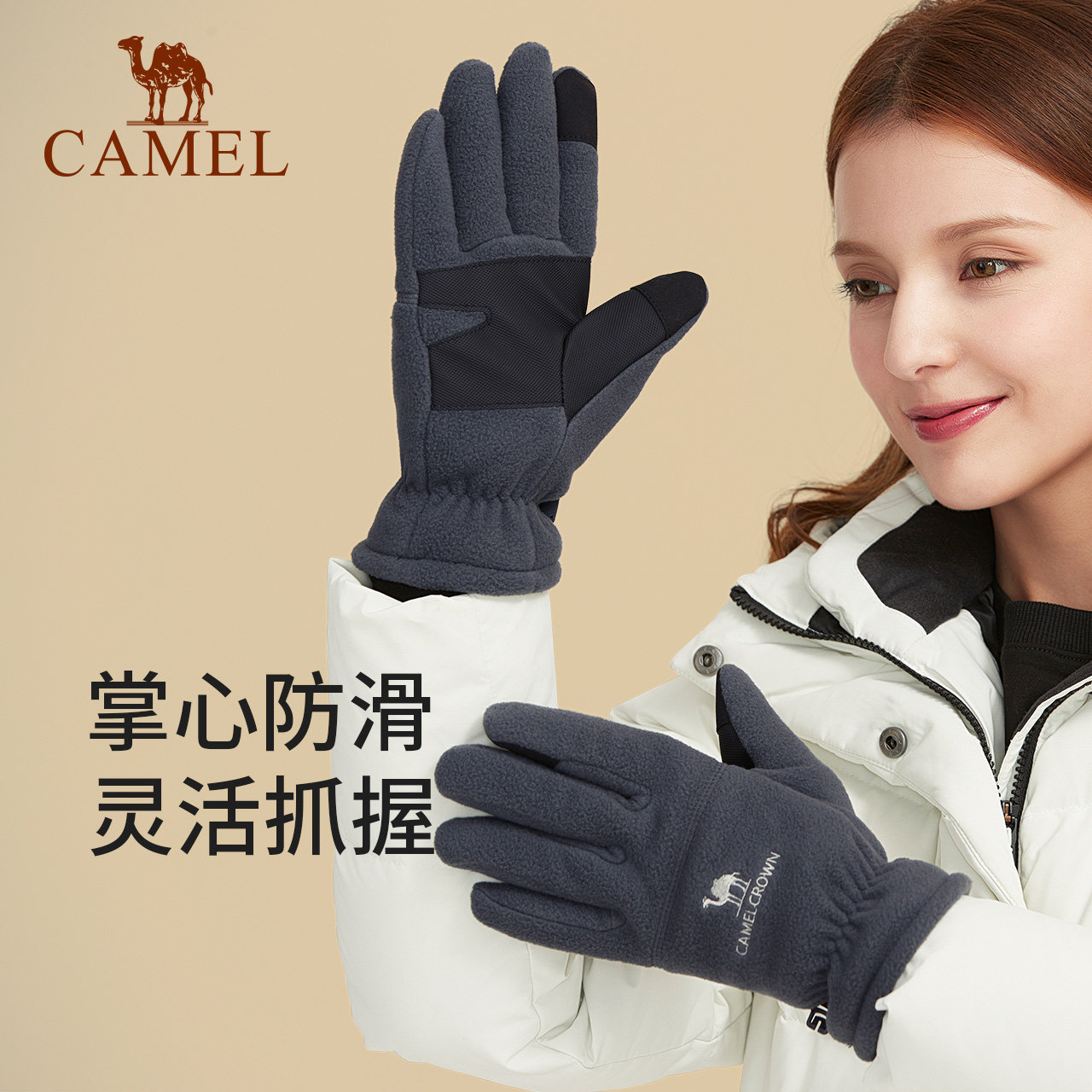 Camel Winter Grip Suede Windproof Gloves for men and women Gardown thickened Warm Riding Bike Sport Gloves Outdoor Ski