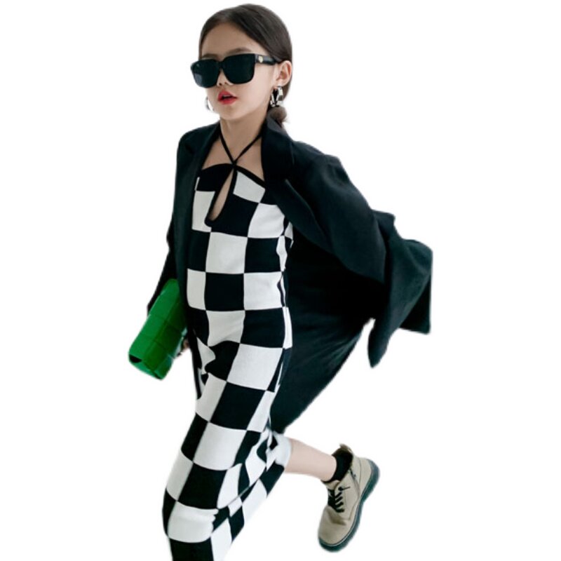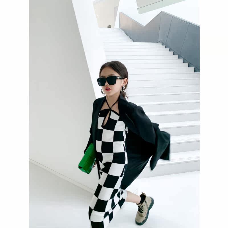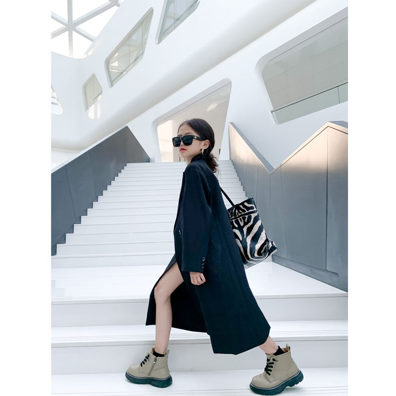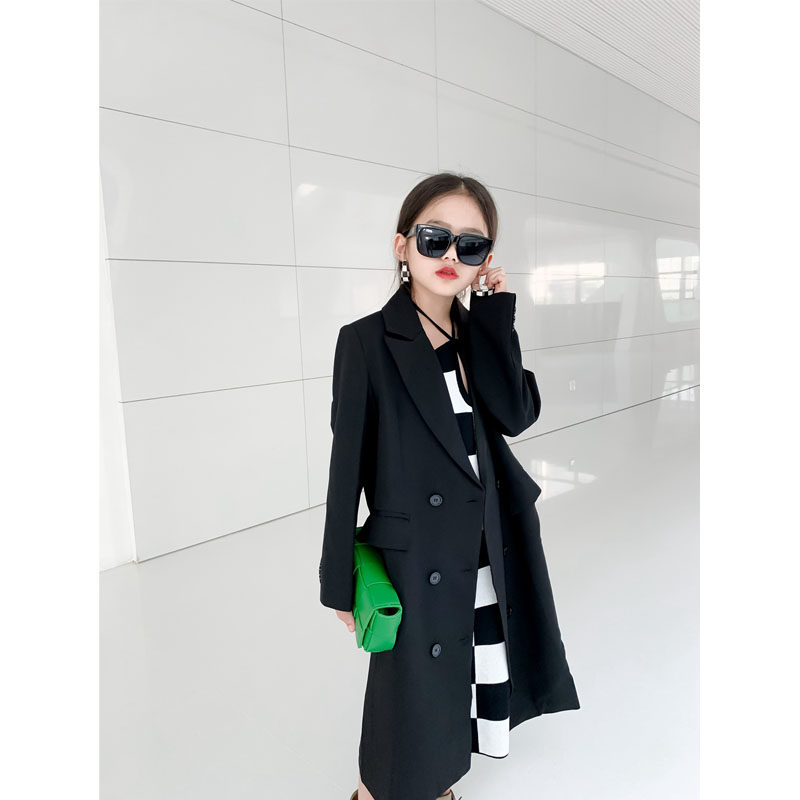 South Korean high-end children's clothing girl 2022 spring and autumn new windcoat jacket suit collar Long version of casual great clothing wave