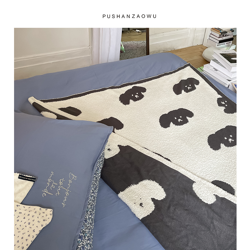 Small Red Book Cartoon Dog Blankets " Knitted Blanket Office Warm Afternoon Sleeping Blanket Sofa Blanket Bedroom Decorative tapestry