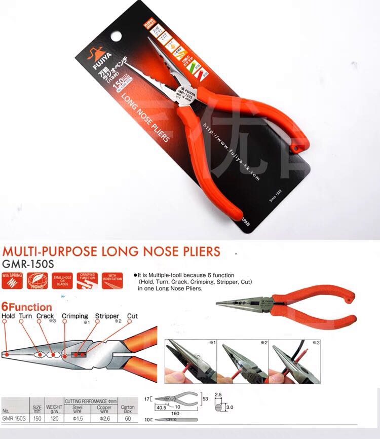 Japan pliers FUJIYA original fitting imported Fukiya old tiger pliers sharp mouth slanted mouth pliers electric tool wire pliers