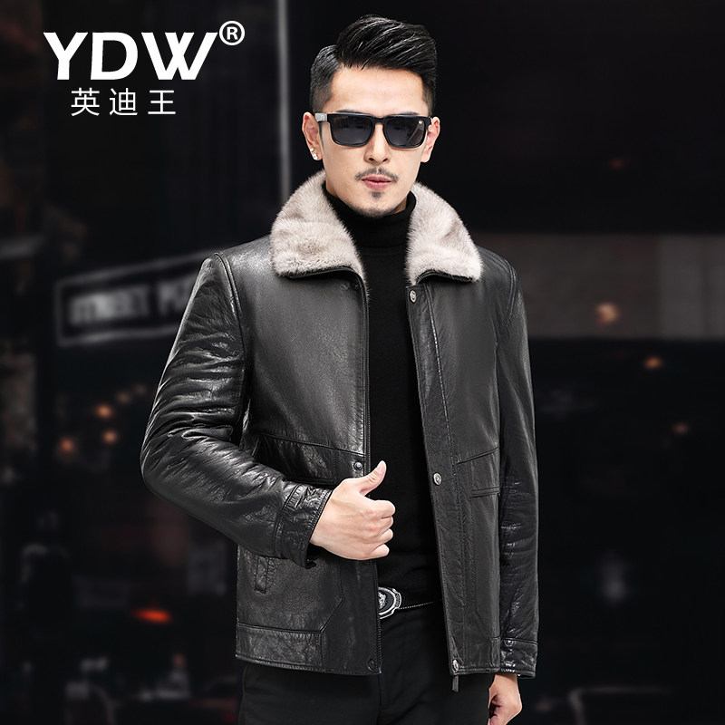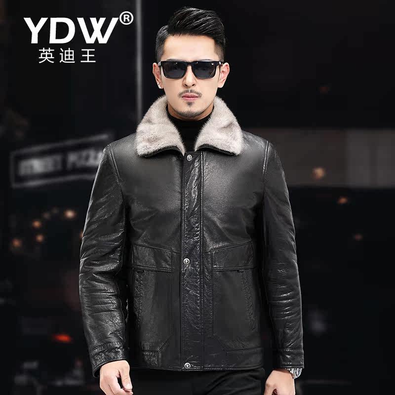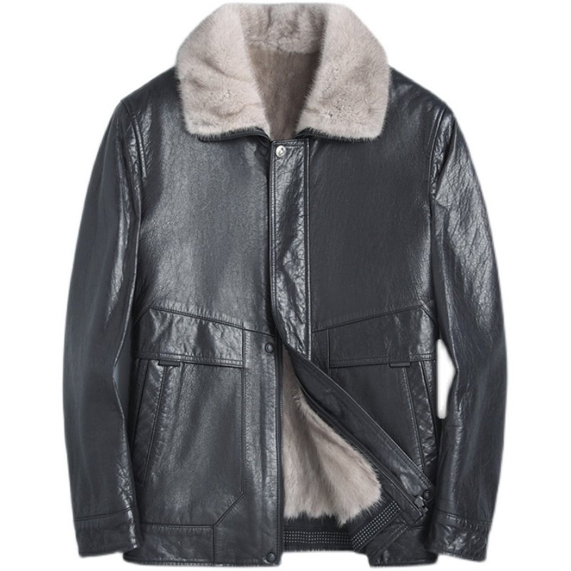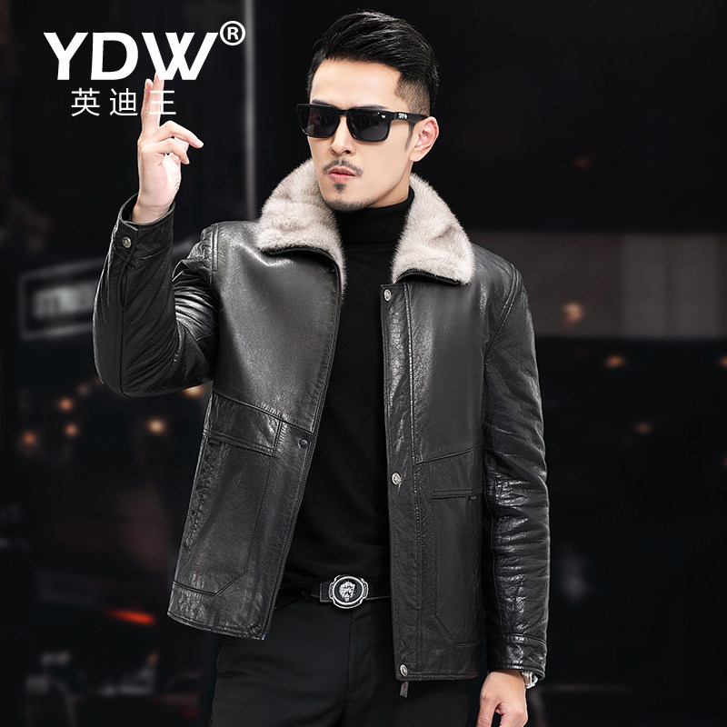 Henning genuine leather leather clothing male oil wax cow leather water mink liner whole mink turning silver Lanten dad genuine leather mink integrated winter