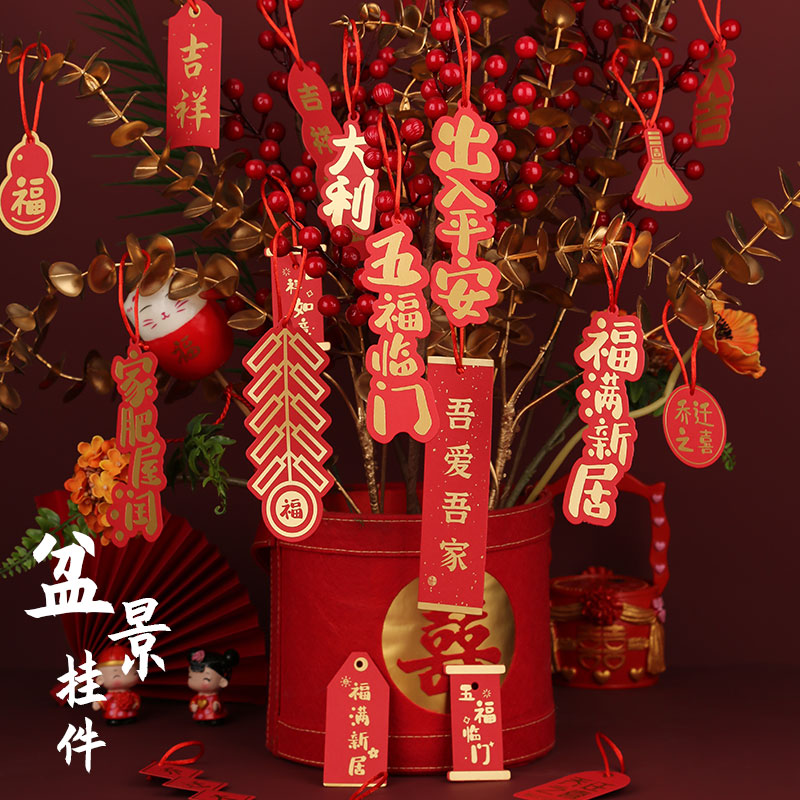 Joe Relocation Joy New Residence Residence Placement Supplies Small Fu Character Bonsai Decoration Hanging Decoration Small Red Lantern Hair Treasure Tree Hanging Decoration