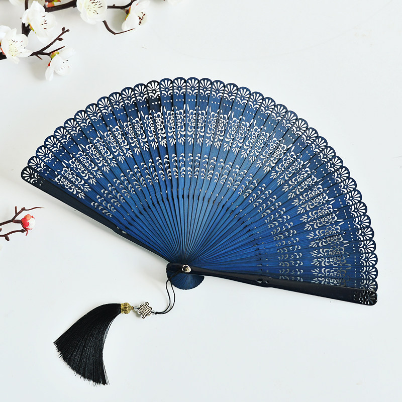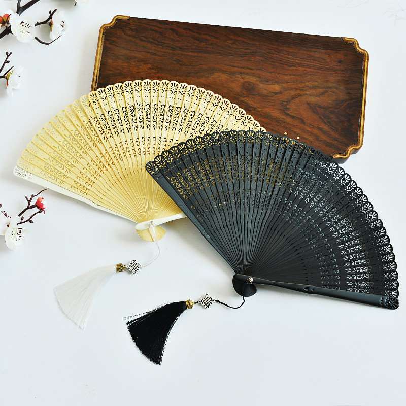 Classical all-bamboo hollowed-out small folding fan Japanese style Chinese fan ancient wind male and female folding fan hand-made dance fan black-Taobao