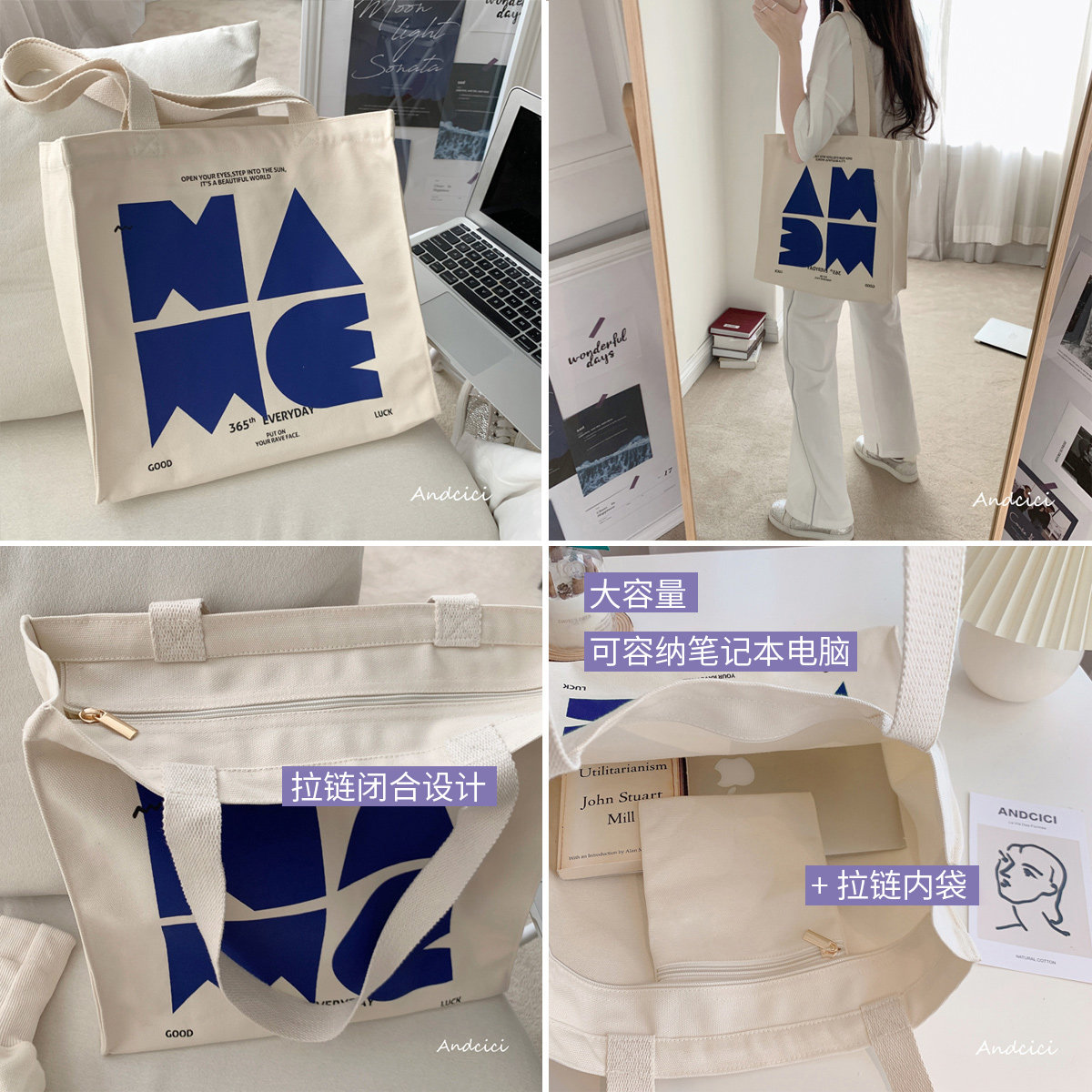 A N D C I C I STYLE DESIGN SENSE NAME ALL COTTON PULL CHAIN SAILS CLOTH BAG SINGLE SHOULDER MALE AND FEMALE STUDENT SCHOOL BAG SHOPPING BAG