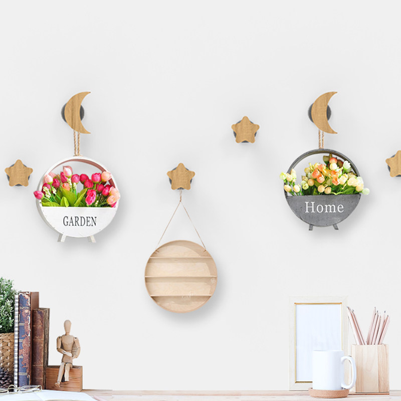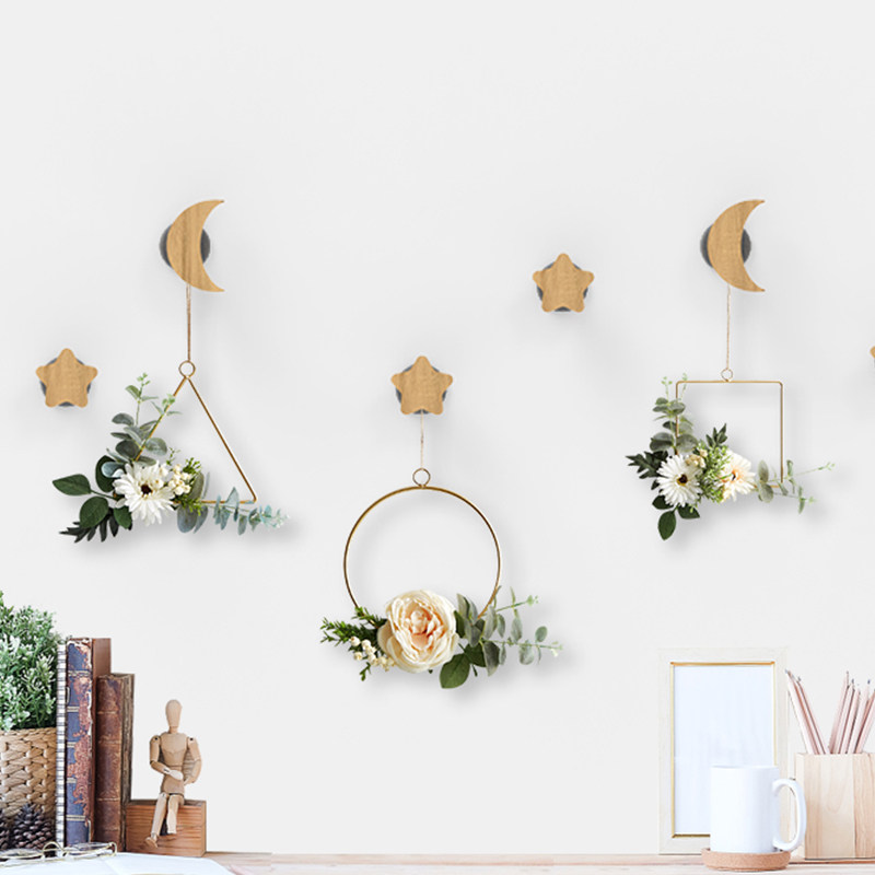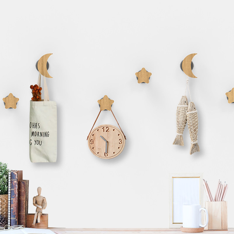 Solid wood star cloud wooden wall wall hook free punching door porch sticky hook clothes hanger hanger wall hanging