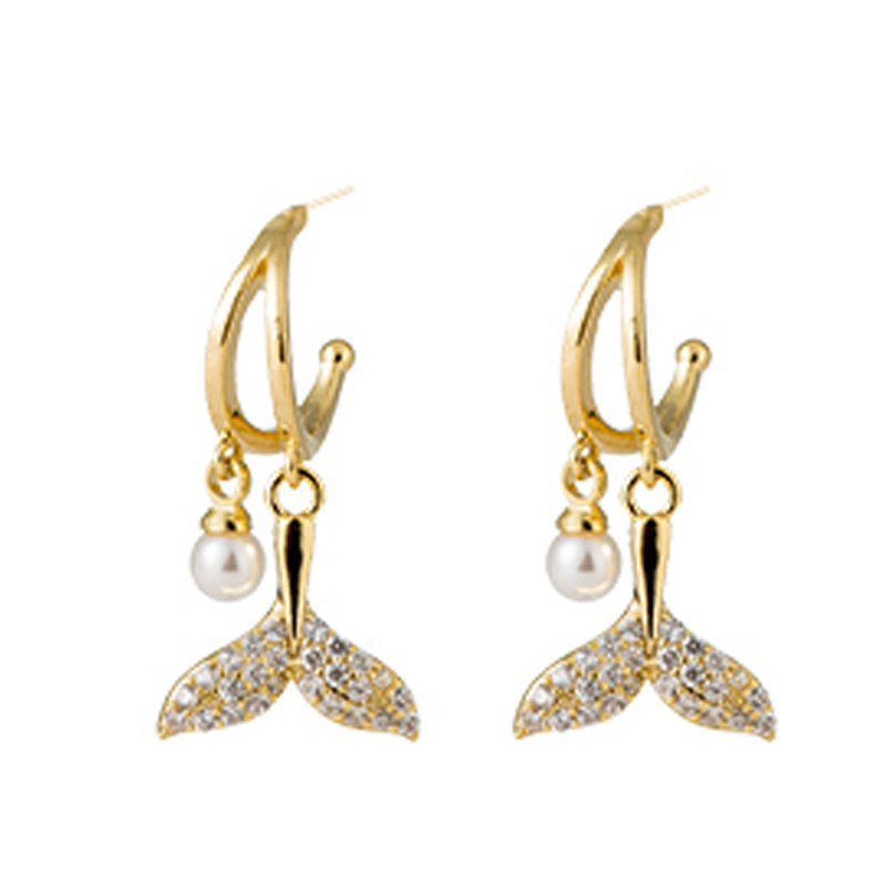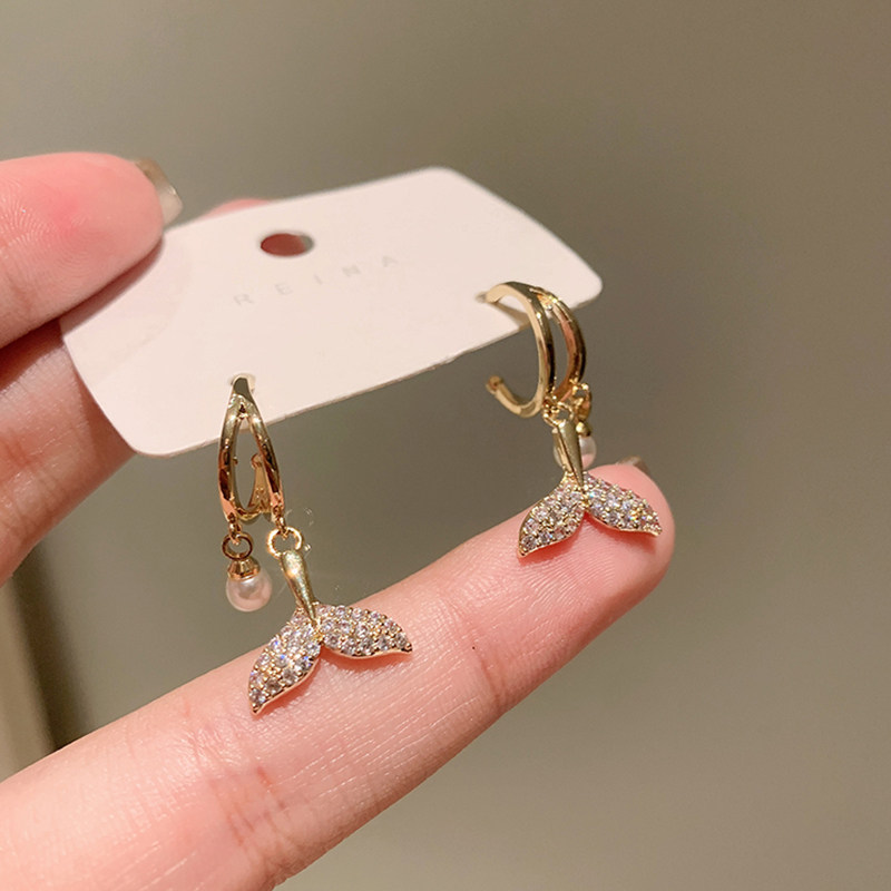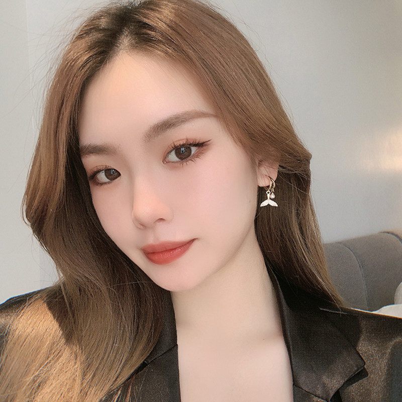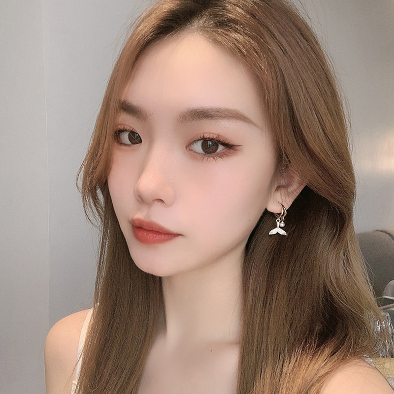South Korea's 2021 new trendy fishtail pearl niche earrings women's autumn temperament high-end light luxury sterling silver earrings