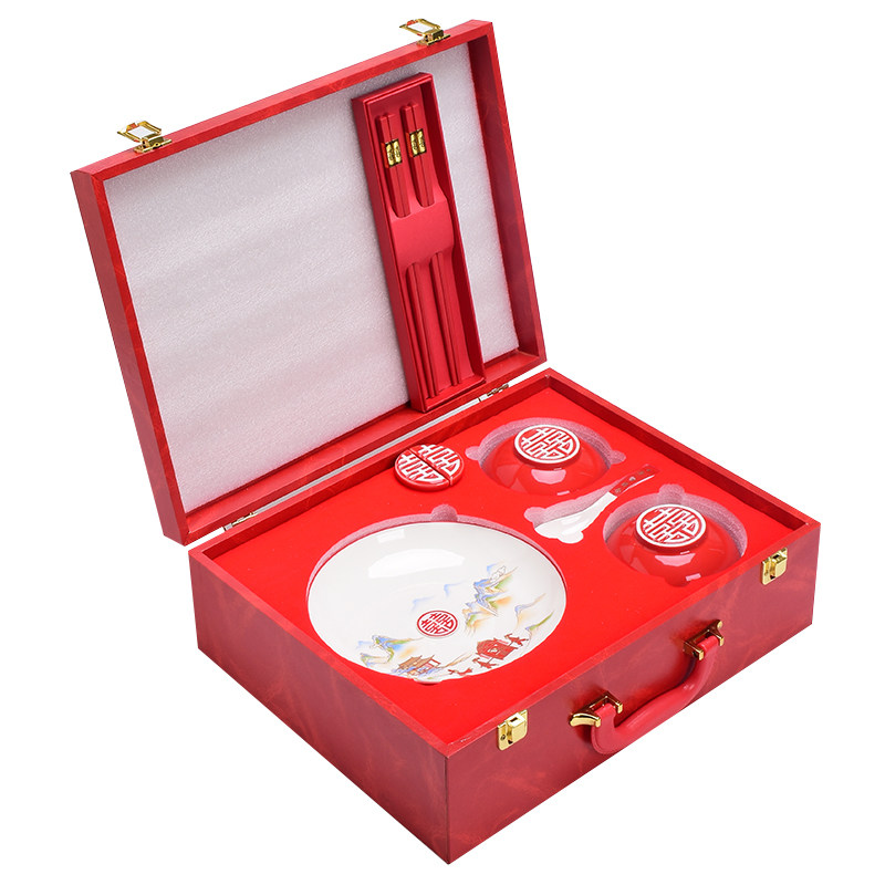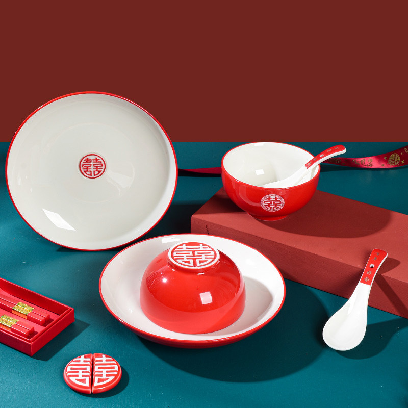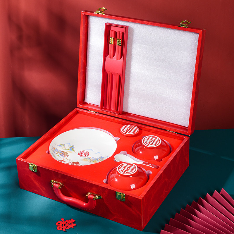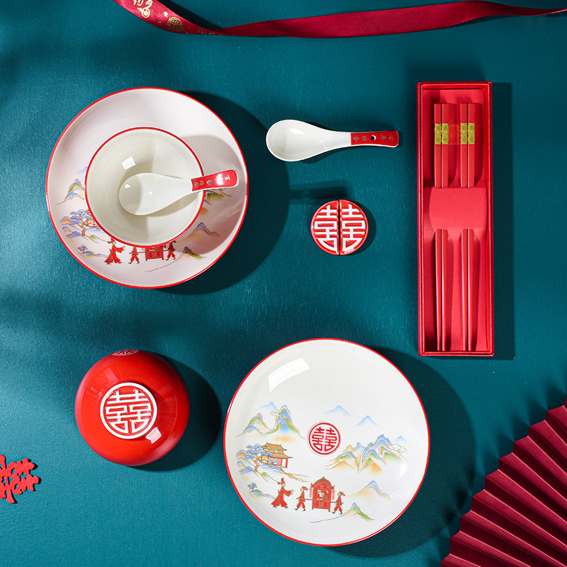 Wedding bowls and chopsticks plate set ceramic dowry wedding couple gifts for newcomers practical tableware high-end gift box ideas