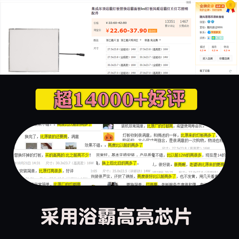 300X300 (with bath overboard) silver 16W waterproof back card bright white light 300X300 (with bath overboard lamp board) silver 20W waterproof back card bright white light 30