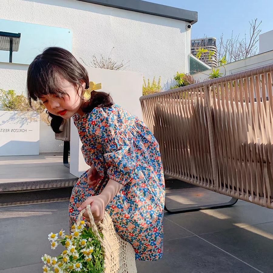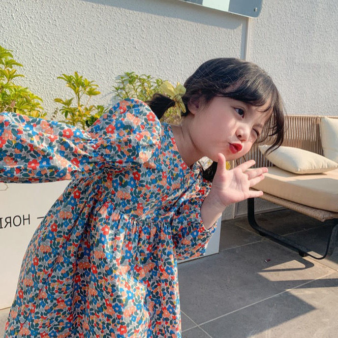 Girls dress autumn 2022 new foreign style long-sleeved net red hot style retro floral children's baby princess dress