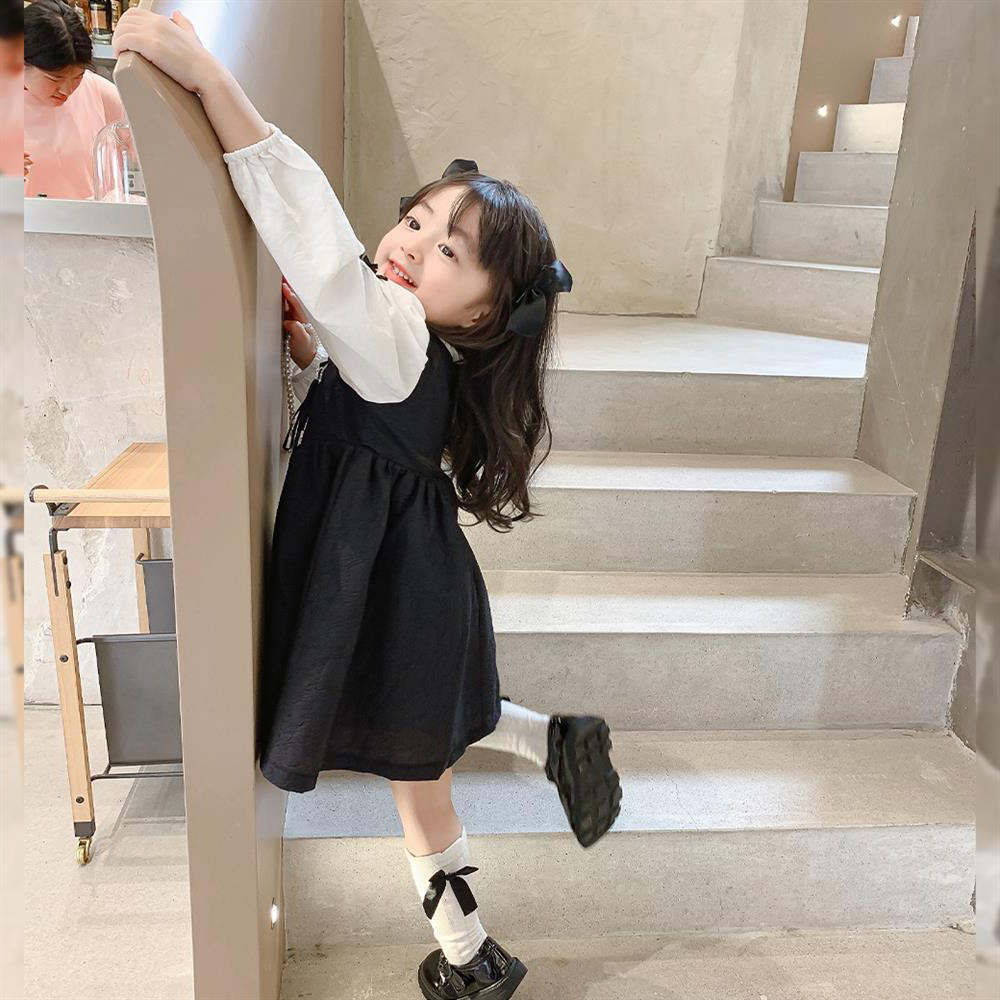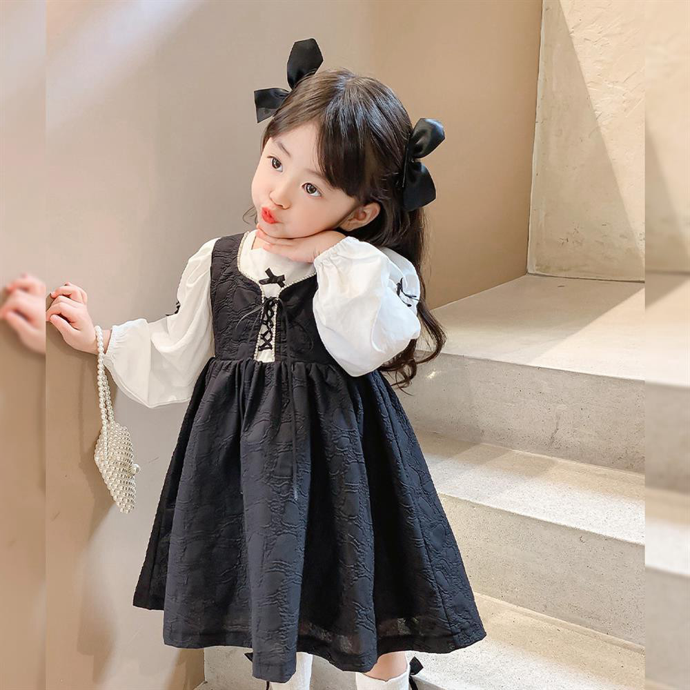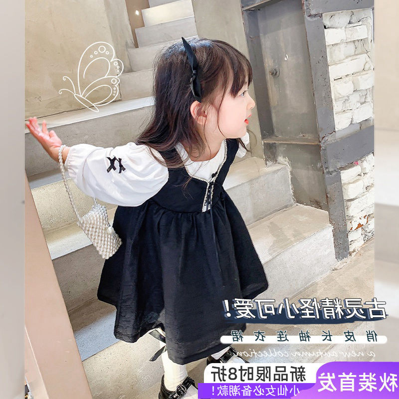 Girls dress autumn 2022 new western style long-sleeved net red popular fake two-piece children's baby princess dress