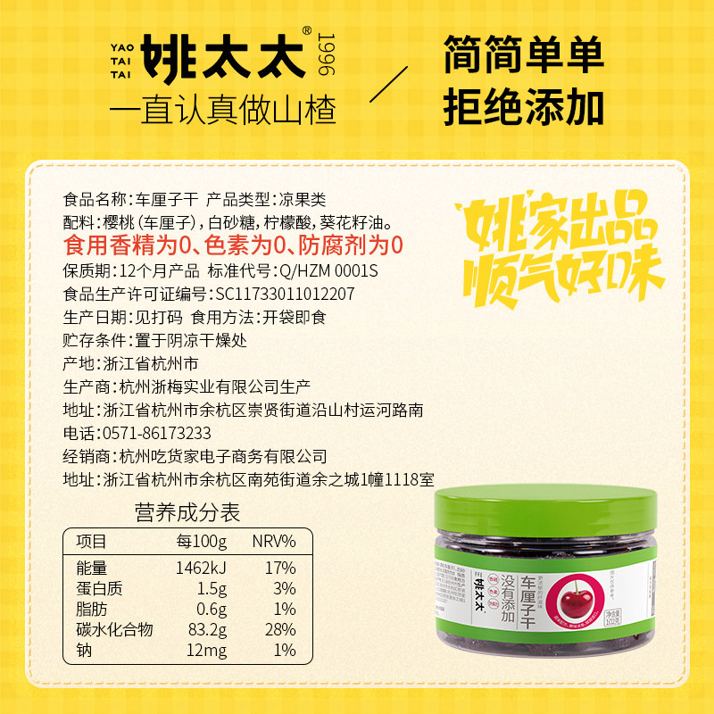 (Live Recommendation) Mrs. Yao's great cherry dry 102g canned cherry dried fruit dried fruit dried fruit whole fruit dried